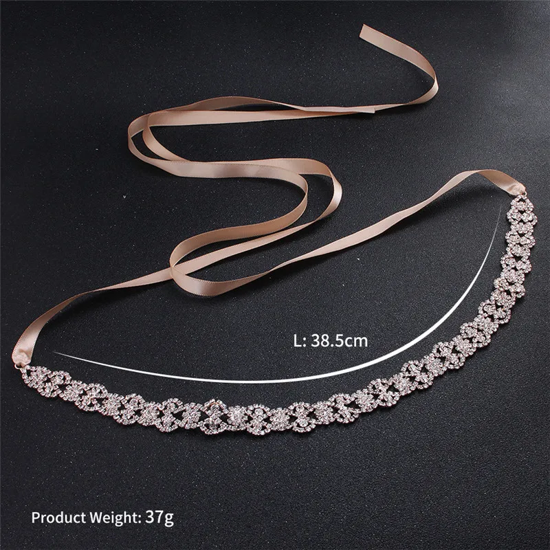 | Jonnafe Rose Gold Color Women Prom Dress Waist Sash Rhinestone Bridal Headband Belt Wedding Accessories |