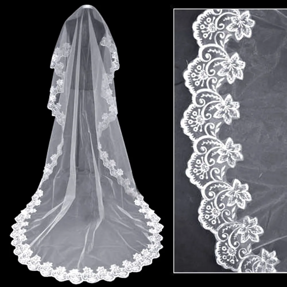 1T Women One-Tier Lace Applique Scalloped Edge Waterfall Bridal Veil 2022
