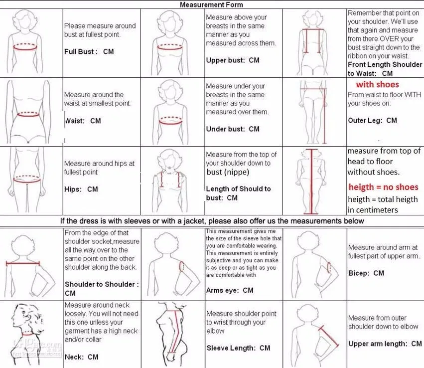 3. The wedding dress is custom made, so please kindly tell us the standard size and the color. Please measure the size following the measurement instructions, and then measure yourself carefully, thanks.