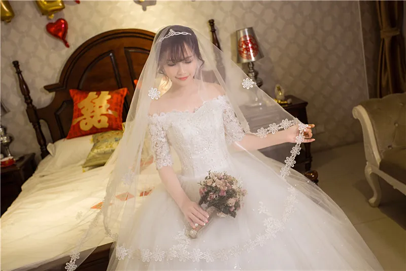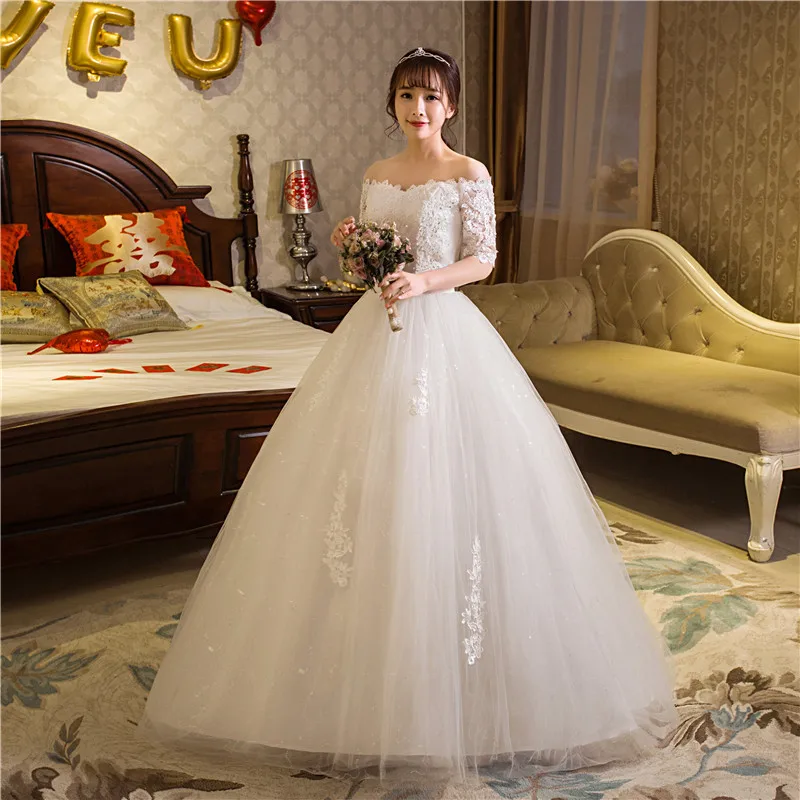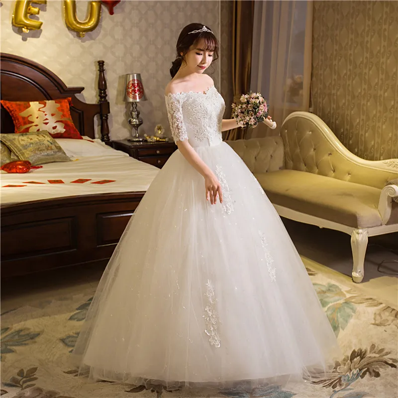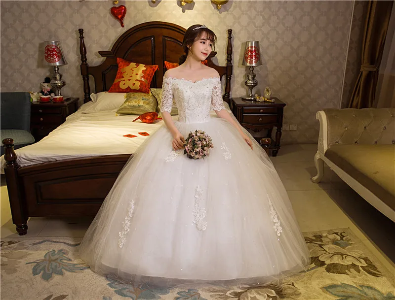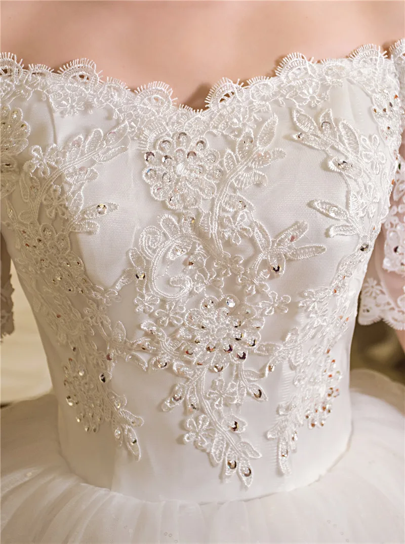 | Real Photo Wedding Dress 2020 Autumn Half Sleeve Boat Neck Lace Appliques Ball Gown Off The Shoulder Princess Vestidos De Novia |